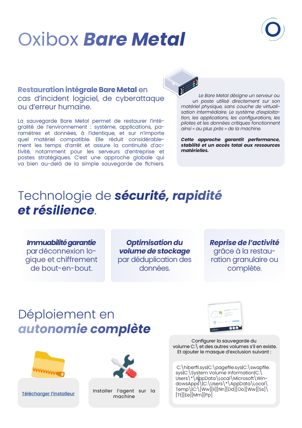 La sauvegarde Bare Metal Oxibox offre une solution robuste, sécurisée et rapide pour protéger les systèmes critiques des entreprises. En cas d’incident majeur, Oxibox permet de redémarrer une machine complète en quelques étapes, tout en garantissant l’intégrité et la sécurité des données.